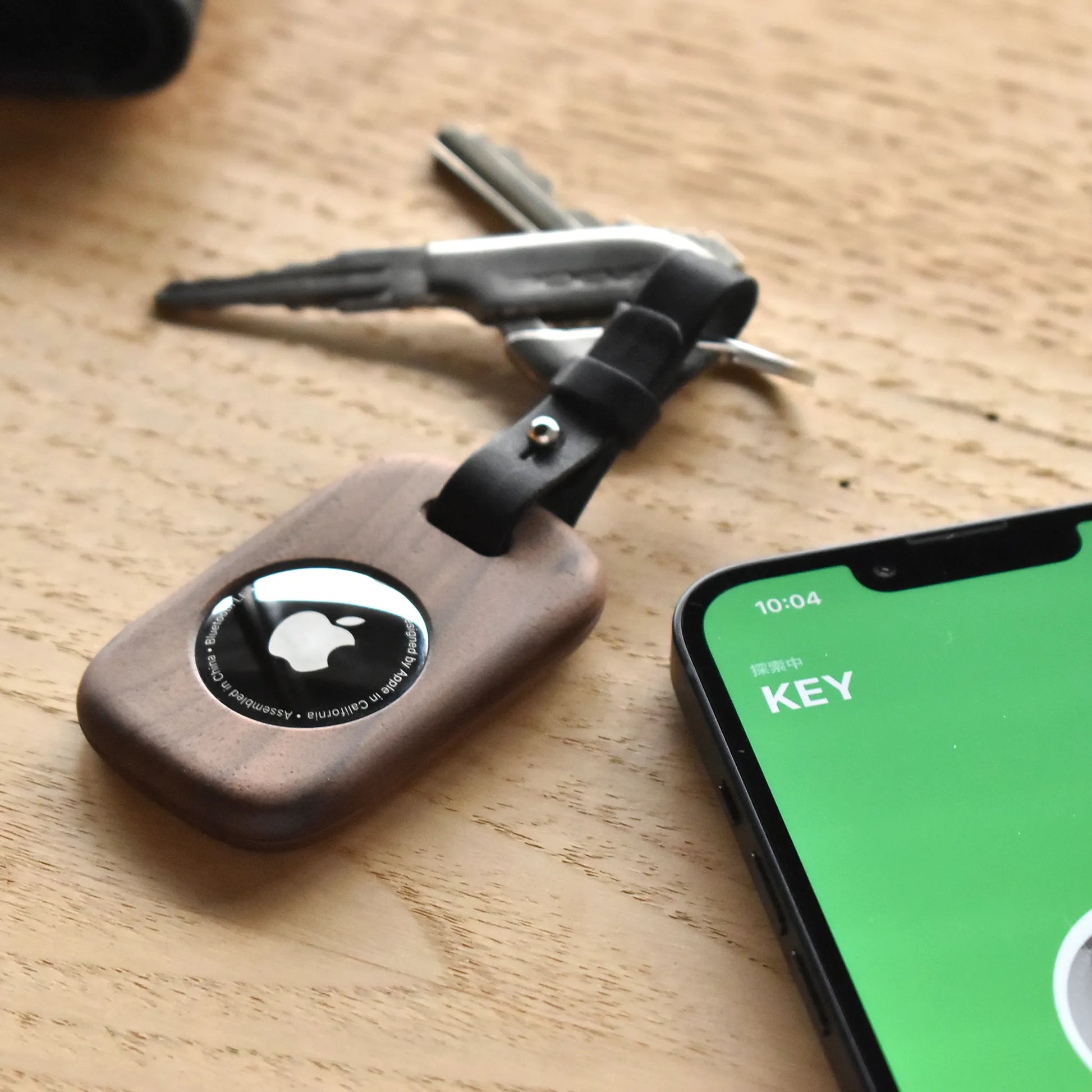 Note: This product includes the wooden holder and leather strap only. The Apple AirTag is not included.