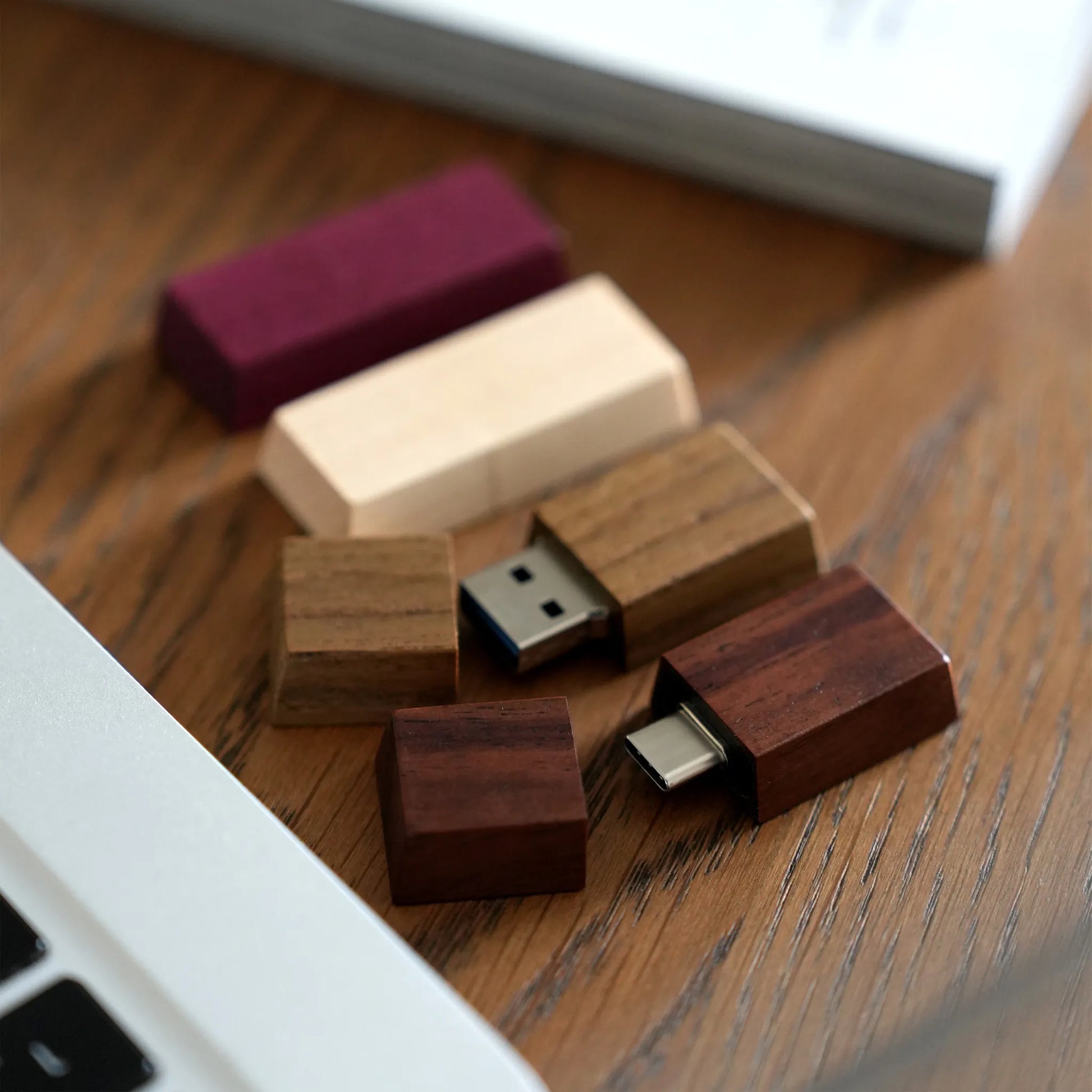Shaped with a charming miniature chocolate motif, this wooden USB drive adds a playful yet refined touch to your everyday essentials. Equipped with a reliable USB-A or USB-C connector and a generous 64GB capacity, it provides plenty of space for storing important files, photos, and memories.