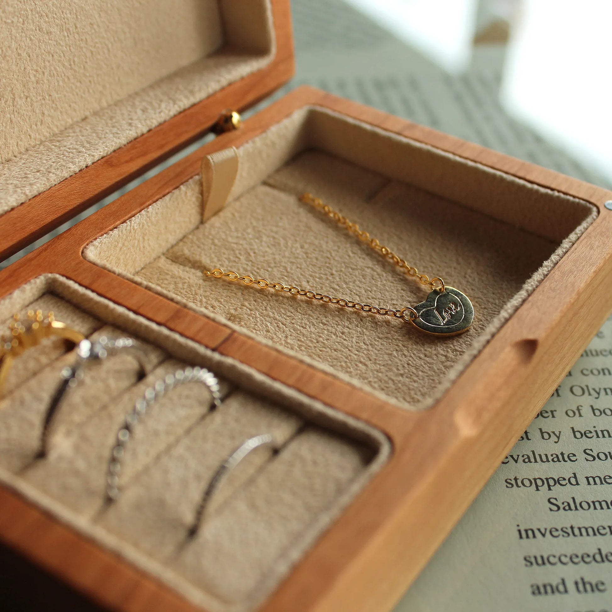 Open the lid, and you are greeted by the quiet sophistication of your cherished jewelry, beautifully cradled within the wooden box—transforming the simple act of storing your treasures into a moment of everyday delight.