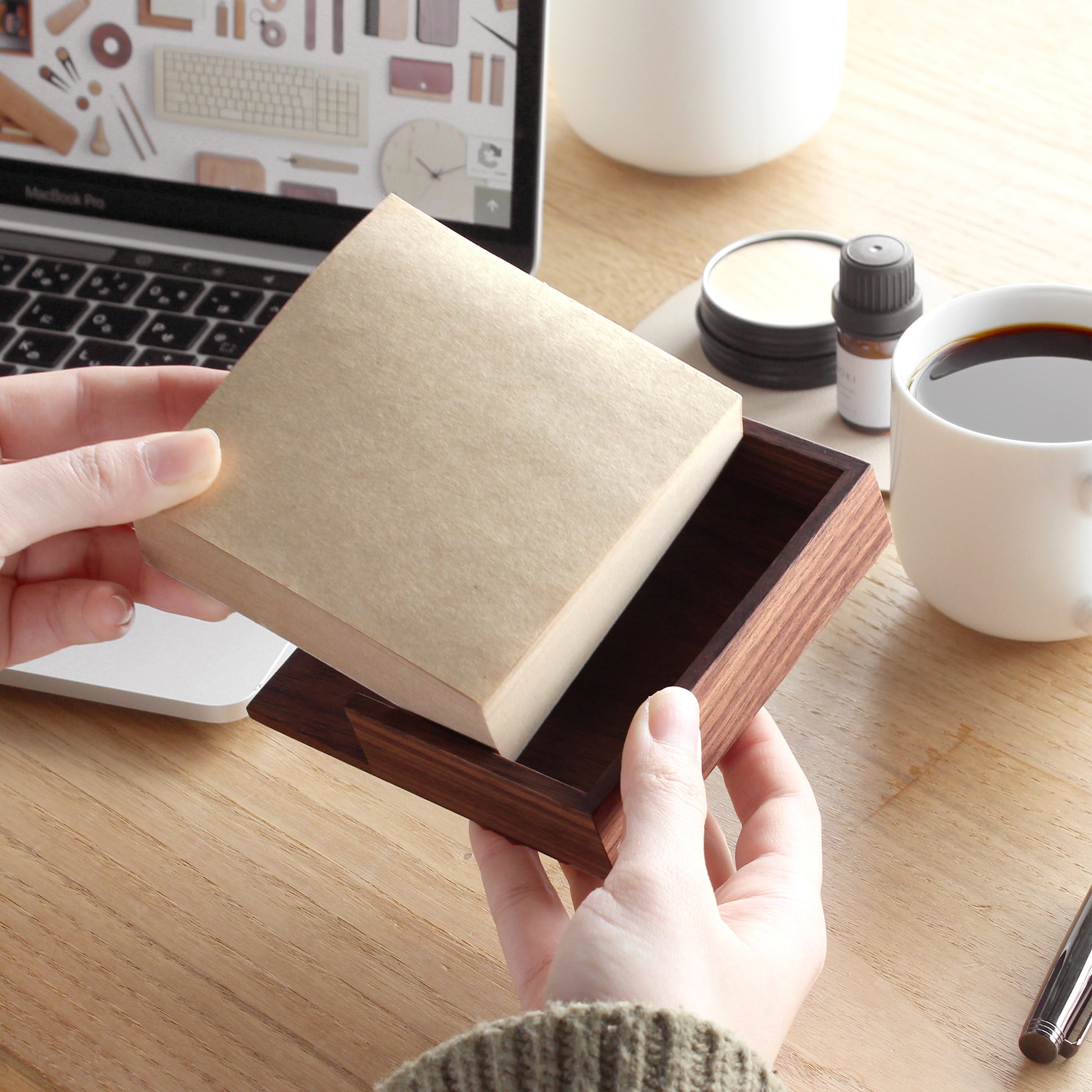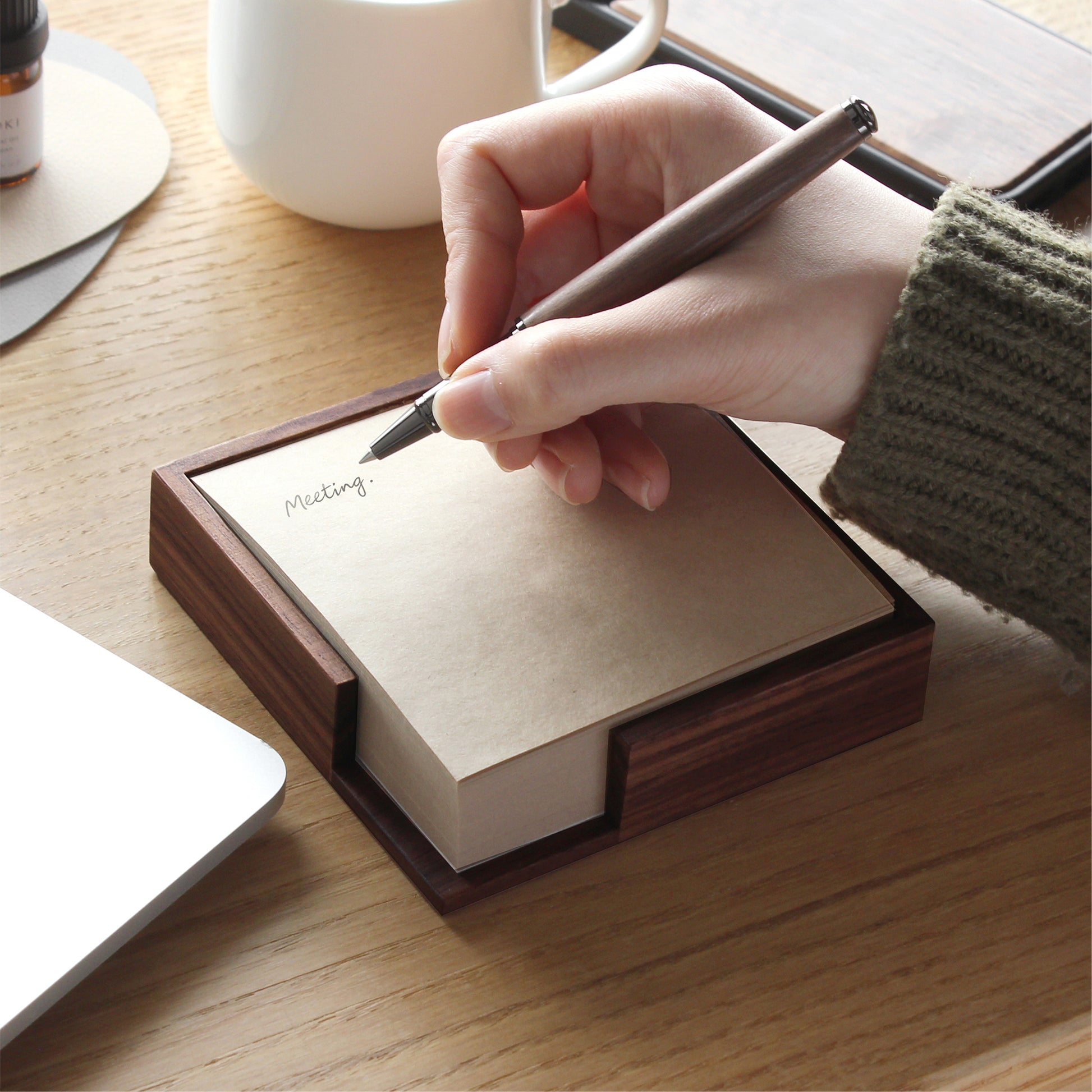 The Memo Block & Tray 100 seamlessly blends everyday functionality with the natural elegance of fine wood. Specifically designed for standard 100mm square memo blocks, this dedicated tray offers a sophisticated sanctuary for your notes–transforming a simple desk accessory into a statement piece.